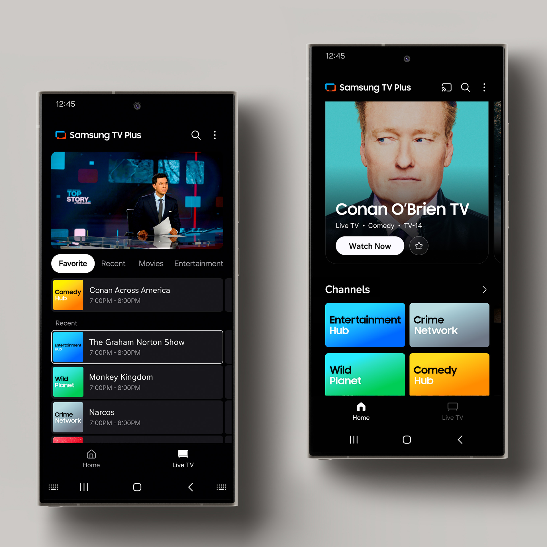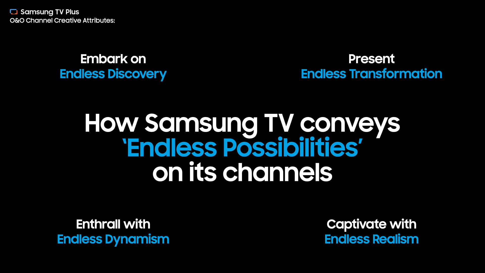 From a set of disconnected channels, a joined-up system of simple plinths was created to align the brands in a single suite, using the Samsung typography to align the design principles to the Samsung TV Plus masterbrand. Distinctive colours are used to clearly define each genre, creating colour attribution for audiences while the system allows for future brands to be seamlessly integrated into the portfolio.